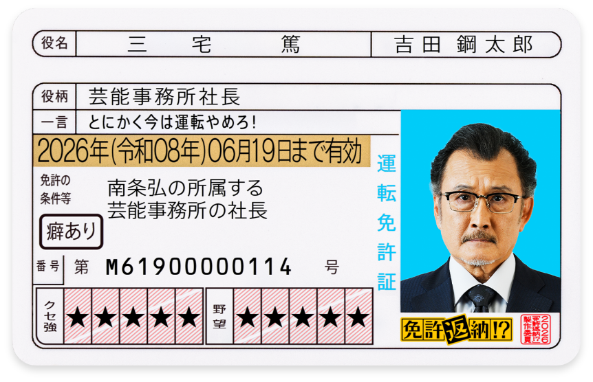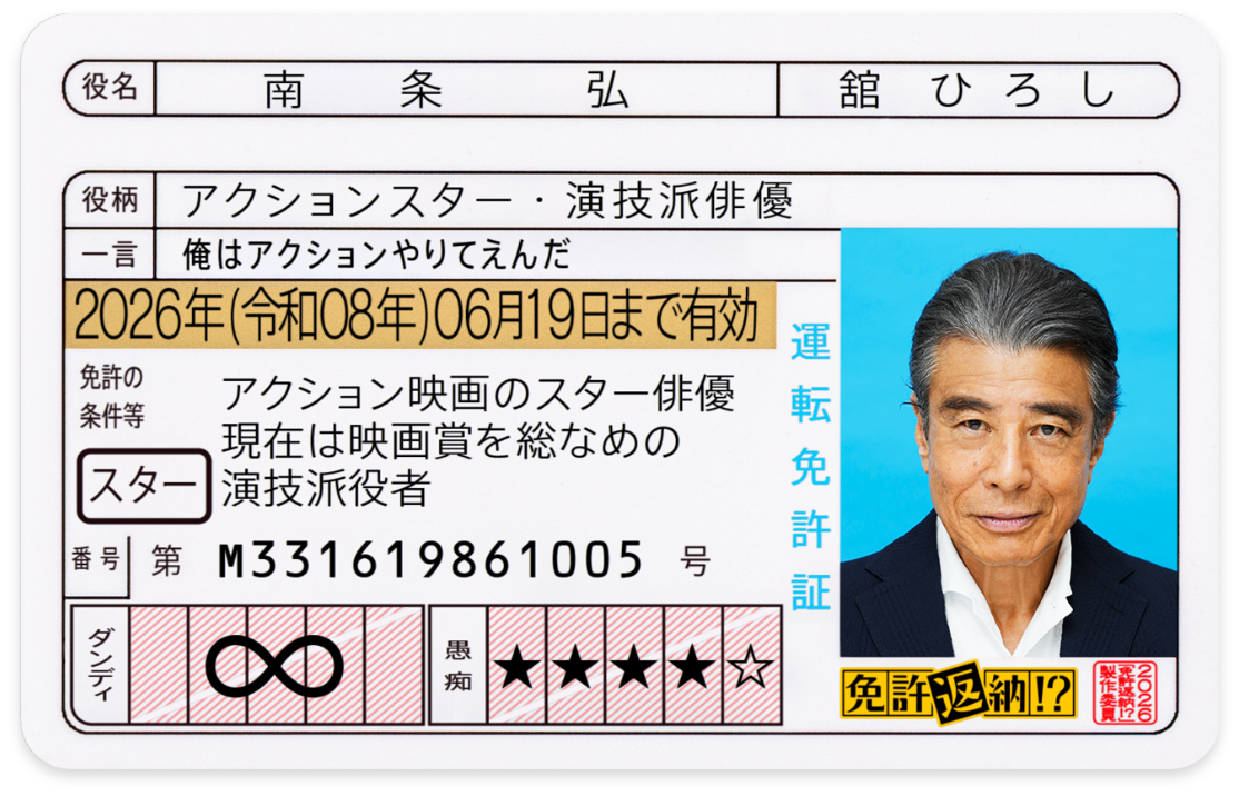 この度、免許返納するつもりは毛頭ない主人公・南条弘を演じる、スター俳優・舘ひろしをとりまく、確かな実力と華々しさをあわせもつ豪華キャストが解禁!!