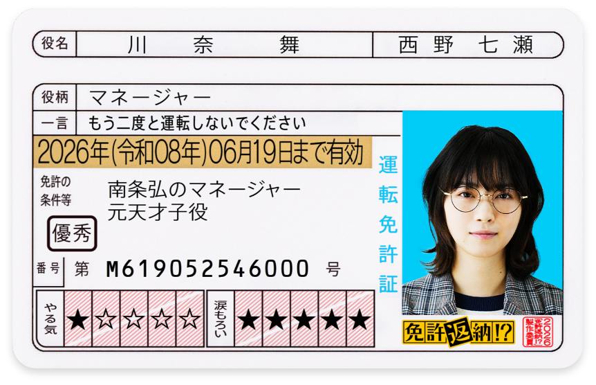 舘は西野について、「とにかく西野君のおかげで、すごく面白くなったと思います。本当に彼女が面白く演じてくれました。本当に感謝しています。」と西野のコメディエンヌとしてのセンスを大絶賛。元天才子役だったこともあり、南条に信頼を置かれている川奈は、南条のひっきりなしの喜怒哀楽に振り回されてうんざりしつつも、いざという時には冷徹にブレーキを踏み込むことができる鬼教官さながらの有能マネージャーである。