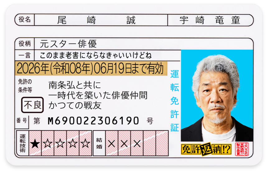 南条と共に一時代を築いた俳優仲間の尾崎誠(おざき・まこと)役には宇崎竜童が決定。